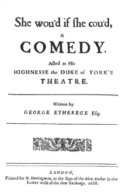 - John Palmers, The Comedy of Manners, G. Bell & Sons, Londres, 1913, 308 pages, pg 3 et 4, Il faut attendre janvier 1664 et la pièce d'Etherege "The Comical Revenge, or Love in a Tub" pour voir le théâtre de Charles II affecté par cette sorte de comédie que Macaulay a si solennellement désapprouvée.
