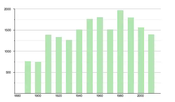 | 1930 | 1 264 | ▼ −5,25 % | |
