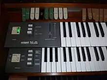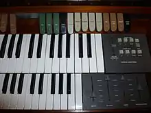 Il y a quatre curseurs sur le côté droit du manuel inférieur. Ceux-ci contrôlent le timbre, le vibrato, la réverbération et les aigus, la balance du volume entre le clavier supérieur et inférieur. Par exemple, il était possible de faire sonner le manuel supérieur beaucoup plus fort que le manuel inférieur.