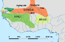 Vers 1312, Kankou Moussa (aussi appelé Kango Moussa, Kankan Moussa ou Mansa Moussa), arrive au pouvoir. C’est sous son règne que l’empire du Mali atteint son apogée : de l'Adrar des Ifoghas à l'estuaire de Gambie.