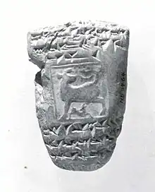 Le pouvoir royal assyrien a traditionnellement des aspects qui ont pu être qualifiés de « théocratiques », puisque l'idéologie du pouvoir propre à ce pays[84] fait du dieu Assur[85] le roi de l'Assyrie, et le roi humain n'est alors que son « vicaire », qui gouverne parce qu'il a été choisi par le dieu. Plus généralement le dieu, sa ville et le royaume portent le même nom Aššur et se confondent. Les textes assyriens désignent leur royaume, ou du moins son espace central (c'est-à-dire sous administration directe) comme le « pays d'Assur » (māt Aššur), écrit dans de nombreux cas, mais pas toujours, avec le déterminatif de la divinité devant le terme Assur, indiquant qu'on fait alors référence au « pays du dieu Assur »[86],[87]. Quoi qu'il en soit, ce concept renvoie en gros à ce que l'on désigne dans la littérature moderne comme l'« Assyrie ». La souveraineté du dieu Assur sur les régions dominées par les rois assyriens se manifeste depuis l'époque médio-assyrienne par le fait que chacune des provinces doit fournir à tour de rôle les offrandes alimentaires qui sont faites quotidiennement dans le temple du dieu dans la cité d'Assur[88],[89],[90].