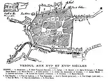 - Gaston Letonnelier, Notice sur les fortifications de Vesoul, Mémoires de la SALSA de Haute-Saône, (lire en ligne), p. 24-38