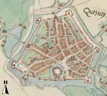 - Le plan Deventer réalisé dans les années 1550 et celui réalisé lors de la tournée d'inspection des fortifications des Pays-Bas par Giovanni Maria Olgiati et Sébastian van Noyen en 1553 représentent ces ouvrages.