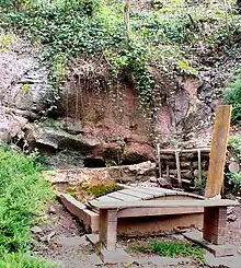 On a découvert, sur ce site une première enceinte fortifiée : un quadrilatère irrégulier de plus de 100 m de côté. Sur le devant, des bâtiments résidentiels servent d'auberges pour les pèlerins. Au sud de la zone, on a découvert un petit temple et une chapelle avec des ex-voto et des dédicaces dédiés à Mars Iovantucarus, aux divinités des sources et à Lénus Mars[1].