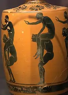 Le jeu de l'ephédrismos tel que décrit par Julius Pollux est également détourné dans certains supports iconographiques et possède même une connotation métaphorique. En effet, malgré les règles établies qui impliquent la participation de deux protagonistes du même sexe, il est parfois représenté dans l'iconographie de façon mixte et entre adultes dans la sphère mythique, faisant preuve d'une métaphore érotique[5]. D'après Ursula Mandel (de), les artistes représentent en particulier des satyres et des nymphes, ce qui selon elle n'est pas anodin, bien au contraire, car ils sont des « démons de la nature encore libres de toute inhibition civilisatrice, jouissant avec une infantilité quasi-intacte de leurs fonctions naturelles[5] ».