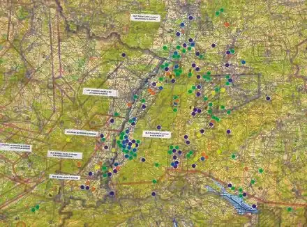 Au même instant, deux explosions dans mon écran latéral : les bombes de VOLVO 41 et 42 viennent d’impacter, immédiatement suivies par l’annonce du succès de ces tirs. Nous savons maintenant que notre objectif sera la zone de distribution par voie routière. Recherche des repères étudiés à la préparation, un moment de doute. Ça y est, je la tiens ! - “Target !” - “Ok, on ne descendra pas, forte activité AAA”, me répond mon pilote. Sans ordre, VOLVO 44 s’est approché pour que nos bombes arrivent simultanément. - “Désignation” Le domaine de tir apparaît. - “Tir” Mon pilote écrase la détente. L’avion, plus léger d’une tonne, fait un bond, puis entame son évasive, VOLVO 44 toujours proche, nous suit. Dans l’écran, la station de distribution est maintenant parfaitement visible. Quarante secondes de temps de chute, c’est très long ! “20 secondes... 10 secondes... 5, 4, 3, 2, 1… Impact !” Dans le coin de l’écran, un fuseau blanc est apparu, fugitif, puis une explosion, énorme. Des morceaux de tôle volent à plusieurs centaines de mètres. Je vois également l’explosion de la bombe de notre équipier, en plein sur la valve. Bingo ! Je regarde dehors et soudain, comme un coup de poing dans l’estomac : un éclair plus bas, puis une flamme bleutée ! “départ missile, huit heures”. Mon pilote, qui l’a vu également, a le doigt sur le bouton de largage des bidons, prêt à s’en servir s’il le faut. La cassette de notre équipier nous apprendra qu’il a eu la même réaction, au même moment. Mimétisme de l’entraînement ? Soulagement, le missile se perd dans la nuit ! Le cap est mis au nord, vers la frontière. À ma droite, la limite entre la Serbie et la Roumanie est très simple à deviner : la Serbie est plongée dans l’obscurité, la Roumanie est éclairée.