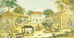 Dans le monde arabe, l'emploi à grande échelle des esclaves sur les domaines agricoles est également bien présent, notamment en Irak au IXe siècle, où vivaient dans l'esclavage plusieurs dizaines de milliers d'esclaves noirs d'Afrique de l'Est. De la même façon, les sultanats de la péninsule Arabique et de la côte est africaine pratiquaient l'esclavage, notamment pour la production de produits agricoles (sésame, céréales, etc.). Au XIXe siècle, c'est une société de plantation qui se développa également dans le sultanat de Zanzibar à la suite de l'explosion de la demande en clou de girofle[39]. En Mésopotamie, les esclaves sont notamment utilisés pour la culture de la canne à sucre, fortement consommatrice de main-d'œuvre.