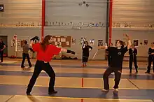 En France, l'enseignement de l'Escrime sportive ne peut se faire que par une personne ayant le titre de maître d'armes[3] ou un BPJEPS « escrime », assistée par des animateurs et des éducateurs fédéraux[4],[5],[6].