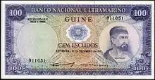 La Banco Nacional Ultramarino émit des billets à partir de 1914, de 10, 20 et 50 centavos. En 1921, des billets de 1 escudo à 100 escudos, furent produits. Un billet de 500 escudos fut introduit en 1945. Enfin, un billet de 1 000 escudos est fabriqué en 1964[2].