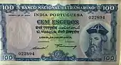 Fabriqués par De La Rue[1], les billets émis par la Banco Nacional Ultramarino sont aux valeurs suivantes : 30, 60, 100, 300, 600 et 1 000 escudos. Ils figurent Afonso de Albuquerque et ses caravelles.