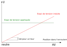 Dans le cas de l'essai de tension induite, l'isolation entre les tours est testés, pas dans le cas l'essai de tension appliquée