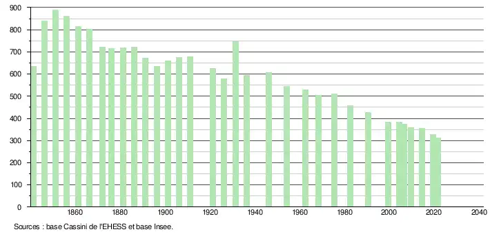 - Population municipale légale en vigueur au 1er janvier 2024, millésimée 2021, définie dans les limites territoriales en vigueur au 1er janvier 2023, date de référence statistique : 1er janvier 2021.