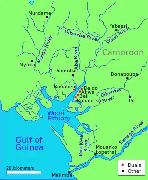 À la demande du Roi Bell et le Roi Akwa de Duala, l'estuaire a été annexée par l'Allemagne en 1884, de devenir le noyau de la colonie du Cameroun[24].