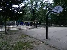 Historiquement, il y avait deux terrains de jeux divisées par un chemin ovale ; au nord de ces aires se trouvaient d'autres équipements de loisirs, notamment une pataugeoire. Dans les années 1950, le Chicago Park District a entrepris des travaux de rénovation de l'aire de jeux et y a ajouté d'autres équipements, dont un abri ouvert, un bac à sable, une pataugeoire et un terrain de basket-ball.