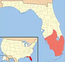 Eumops floridanus est endémique du Sud de la Floride. Il est présent dans plusieurs comtés, dont Charlotte, Collier, Lee, Miami-Dade, Monroe, Okeechobee et Polk. Eumops floridanus est plus susceptible d'être détecté dans les zones agricoles, ainsi que dans les zones où les précipitations annuelles moyennes sont élevées[4].