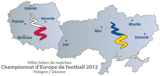 Le 13 mai à Bucarest, le Comité Exécutif de l'UEFA prend une décision concernant le choix définitif de villes polonaises et ukrainiennes qui accueilleront les matches de l'Euro 2012[22]. Comme prévu, Gdańsk, Poznań, Varsovie et Wrocław sont choisies comme villes hôtes polonaises, Chorzów et Cracovie n'étant par conséquent pas retenues comme villes hôtes ou villes réserves. Chez le voisin, l'analyse de l'UEFA a révélé des manques importants concernant les infrastructures dans toutes les villes. Kiev est donc la seule ville confirmée pour l'Euro 2012, mais la tenue de la finale dans la capitale est pour l'instant, et jusqu'à un prochain rapport programmé au 30 novembre, non officialisée. Pour les autres villes ukrainiennes, l'UEFA se décidera à la même date que pour Kiev. De plus, Dniepropetrovsk et Odessa ont été écartées de la compétition, ne respectant pas, selon l'association européenne, les critères[23]. Selon un rapport secret de l'UEFA, la ville de Lviv devrait même perdre la tenue de la compétition dans son stade, la construction de celui-ci étant au point mort[24].