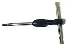 Cet extracteur nécessite également un alésage de la pièce à extraire avec un foret, mais l'extracteur est inséré en le frappant avec un marteau en laiton, afin de ne pas le briser.