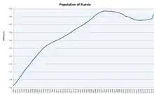 La population russe est estimée à près de 146 millions d'habitants en 2021[8] ce qui en fait le neuvième pays le plus peuplé de la planète. 78 % de ses habitants vivent en Russie européenne[15]. La Russie actuelle est une fédération constituée de 89 entités, les « sujets de la Fédération », disposant d'une autonomie politique et économique variable.