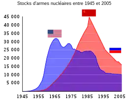Après la Seconde Guerre mondiale, l'URSS devient une des deux superpuissances de la guerre froide, fer de lance du communisme face au monde capitaliste dirigé par les États-Unis, puis contesté par la Chine de Mao à partir des années 1960. L'URSS développe l'arme nucléaire dès 1949, prend une avance dans la conquête spatiale en envoyant dans l'espace le premier animal (1957) puis le premier être humain (1961) et s'implique dans de nombreux conflits afin de maintenir et d'étendre son influence, notamment dans la guerre du Viêt Nam. En 1979, elle s'engage directement dans une guerre en Afghanistan, mais elle est contrainte à l'évacuation en 1988, un échec qui est une des causes de son effondrement en 1991.