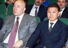 À gauche, le président de la Fédération azerbaïdjanaise des échecs Elman Rustamov et, à droite, le président de la Fédération internationale des échecs (de 1995 à 2018), Kirsan Ilioumjinov.