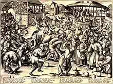 Fête des fous, gravure de Pieter Van der Heyden, en 1559, d'après Brueghel.