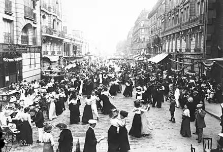 La fête organisée en 1878 à l'occasion de l'Exposition universelle est immortalisée par plusieurs toiles de Claude Monet (La Rue Montorgueil à Paris. Fête du 30 juin 1878.) et d'Édouard Manet (La Rue Mosnier aux drapeaux.).