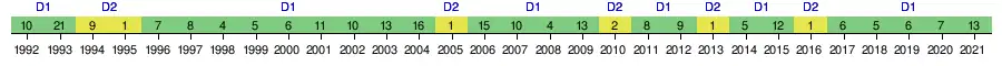 2005 2e 1er 55 22 17 4 1 51 10 +41 Huitièmes de finale