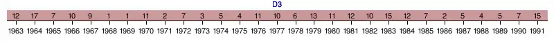| 1982 | 10e | 31 | 32 | 12 | 7 | 13 | 34 | 35 | -1 | ||