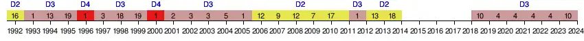 1996 4e Zone 2 1er 77 32 24 5 3 73 22 +51 128es de finale