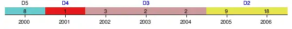 | 2004 | 2e | 83 | 36 | 27 | 2 | 7 | 69 | 20 | +49 | Cinquième tour | |