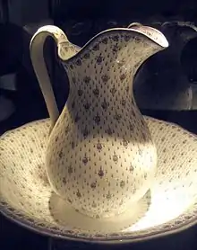 ![]() Broc et bassine en faïence à décor imprimé, Creil-Montereau. Musée Gallé-Juillet de Creil. |