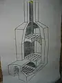 Chemisé en briques réfractaires et appuyé contre des murs épais renforcés d'importants contreforts afin de résister aux poussées dues à la chaleur, il possédait probablement un sous-sol et deux étages. Au sous-sol s'aperçoit encore le foyer (alandier) et la fosse d'évacuation des cendres ainsi que la sole sur laquelle étaient disposés les émaux à vitrifier. Les deux étages ont disparu mais la trace des tuyères d'évacuation des gaz brûlants vers les parties supérieures permet d'imaginer les voûtes percées de carneaux (trous) sur lesquelles étaient posées les pièces émaillées et décorées, au premier niveau, et les formes de terre crue, au second, pour une cuisson aux environs de 1 000 °C d'une durée de 2 à 4 jours. (source : "Cheminement piéton de la Ville de Nevers").