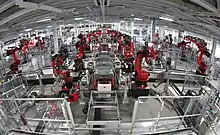 Usine des robots: FANUC, le constructeur japonais de robots, a maintenu une politique d'usines dans le noir depuis 2001[5]. Selon le vice-président Gary Zywiol, des robots construisent d'autres robots à une vitesse de 50 par période de vingt-quatre heures et peuvent continuer sans surveillance jusqu'à 30 jours. Non seulement elle est une usine dans le noir, mais on a éteint la climatisation et le chauffage.