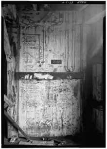 Journal de bord d'un ouvrier sur le mur intérieur à l'extrémité sud de la plate-forme de chargement. - Usine de E. et T. Fairbanks and Company, rivière Sleepers, Saint Johnsbury, comté de Caledonia