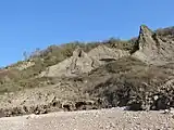 Cette zone est remarquable sur le plan géologique. Les marnes de l'Oxfordien, sous l'action du ruissellement des eaux de l'aquifère qui les surmonte, sont entaillées de profonds ravins. Ceux-ci sont parcourus de coulées boueuses qui avancent lentement vers la mer et contiennent des blocs de craie crétacée venus du sommet. À marée haute, les vagues attaquent le front des coulées, dégageant des fossiles extrêmement variés[4].