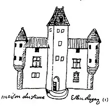 - Dessin de La Tour des Champs dite Tour de la Belle-Allemande avant sa destruction, Archives de Lyon