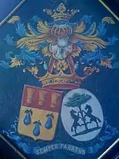 La seconde branche de cette famille obtint le , concession du titre de baron transmissible par ordre de primogéniture masculine, et porte les armoiries suivantes : d'or à trois poires d'azur, deux, un, feuillées et tigées de sinople, l'écu sommé d'un heaume d'acier, fourré d'azur, grillé, colleté et liseré d'or, aux bourrelets et hachements d'or et d'azur.