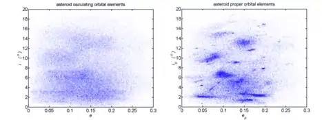De manière stricte, l'adhésion d'un astéroïde à une famille donnée se fait par l'analyse de ses éléments orbitaux propres, plutôt que par ses éléments orbitaux osculateurs, ces derniers variant régulièrement sur des échelles de temps de plusieurs dizaines de milliers d'années. Les éléments orbitaux propres sont quant à eux des constantes liées au mouvement censées rester quasi constantes sur des périodes d'au moins plusieurs dizaines de millions d'années.