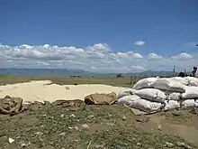 Farine de maïs du Kenya, mise à sécher et en sacs.