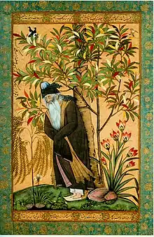 À cette époque tardive appartient aussi le portrait d'un sage, inspiré d'une gravure occidentale de Martin de Bos intitulée Dolor et qui elle-même est issue d'une idée de Dürer. Ce portrait composé à l'âge de soixante-dix ans d'un vieux soufi pensif plein de sagesse donne une idée de l'artiste lui-même ; non pas une idée de sa représentation physique, mais de l'état de sa psychologie à cet âge.