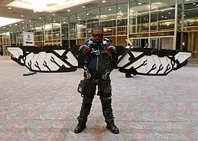 Le costume original du Faucon a été construit par la Panthère noire[1],[7] avec des modifications de Desmond Burrell. Ses ailes ont continuellement évolué au cours de sa carrière[1].