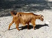 - Le tahr d'Arabie (Hemitragus jayakari ; en arabe gatt al barra) est un autre caprin, présent en petit nombre dans les montagnes escarpées du Nord du pays (Musandam, monts Hajar, arrière-pays de Sour)[2]. En 1985 le nombre de tahrs a été estimé à 2 000. C'est une espèce vulnérable, menacée par les périodes de sécheresse, le braconnage, les maladies, et en concurrence pour sa subsistance avec d'autres espèces telles que les chèvres sauvages ou domestiques et les ânes. Depuis 1976 un décret royal interdit de tuer ou de capturer le tahr, mais, compte tenu de la nature du terrain, ces dispositions sont difficiles à mettre en œuvre. En 1982 le Sultanat émet un timbre dédié au tahr[3], un autre en 2000[4]. Depuis 1996 le tahr figure sur la liste des espèces menacées de l'UICN.
