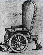 Un fauteuil roulant a été fabriqué spécialement pour Philippe II d'Espagne (1527-1598)[3]. Il figure sur un croquis datant de 1595 dans une chaise avec des roues.