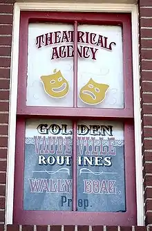 Une tradition des parcs à thèmes Disney est de placer des hommages à des personnalités plus ou moins importances de l'entreprise au sein des attractions ou du décor. L'une des formes de ses hommages est la mise en place de textes sur les fenêtres du premier étage de Main Street, USA. Ces textes sont assez proches des publicités que l'on trouvaient au début du XXe siècle sur les fenêtres des édifices des centres-villes américains.