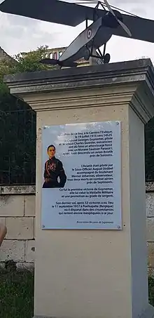 Monument hommage à Georges Guynemer devant la Ferme de la Carrière l' Évêque à Setmonts