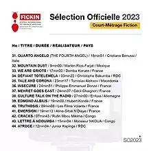 Sur près de 527 films inscrits, 121 films ont été sélectionnés par le comité de sélection de cette 10è édition, dont 19 courts-métrages documentaire, 60 courts-métrages fiction, 14 longs-métrages documentaire, 17 longs-métrages fiction et 11 films d'animation.