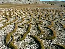 - En adret, ce sont des prairies ouvertes, thermophiles, striées, organisées en gradins retenant les pierres, avec des marches quasi nues en zones subalpines supérieures et alpines inférieures des Pyrénées, quelquefois associées avec Carex sempervirens.
