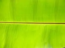 La feuille de bananier est une feuille issue du bananier, qui peut produire jusqu'à 40 feuilles au cours d'un cycle de croissance[1]. Les feuilles ont un large éventail d'applications car elles sont grandes, flexibles, imperméables et décoratives. Elles sont utilisées pour cuisiner, emballer[2] et servir les aliments dans un large éventail de cuisines des régions tropicales et subtropicales (tel que le four polynésien). Elles sont utilisés à des fins décoratives et symboliques dans de nombreuses cérémonies hindoues et bouddhistes. Dans la construction traditionnelle de maisons dans les régions tropicales, les toits et les clôtures sont faits de chaume de feuilles de bananier sèches[3]. Les feuilles de bananier et de palmier étaient historiquement les principaux supports d'écriture dans de nombreuses nations d'Asie du Sud et Sud-Est.