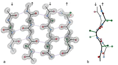 - (en) Pauling et RB Corey, « Configurations of Polypeptide Chains With Favored Orientations Around Single Bonds : Two New Pleated Sheets. », Proceedings of the National Academy of Sciences of the United States of America, vol. 37, no 11, , p. 729-740 (PMID 16578412, PMCID 1063460)
