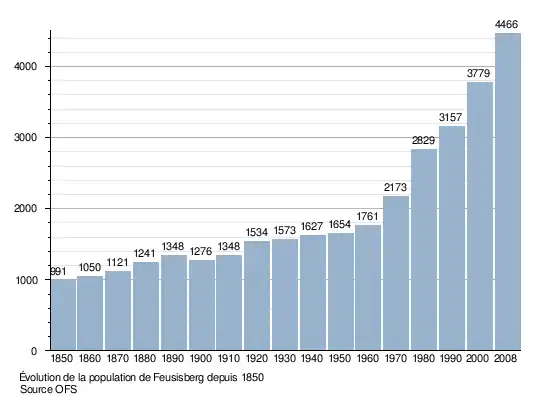 Le graphique suivant résume l'évolution de la population de Feusisberg entre 1850 et 2008[3] :